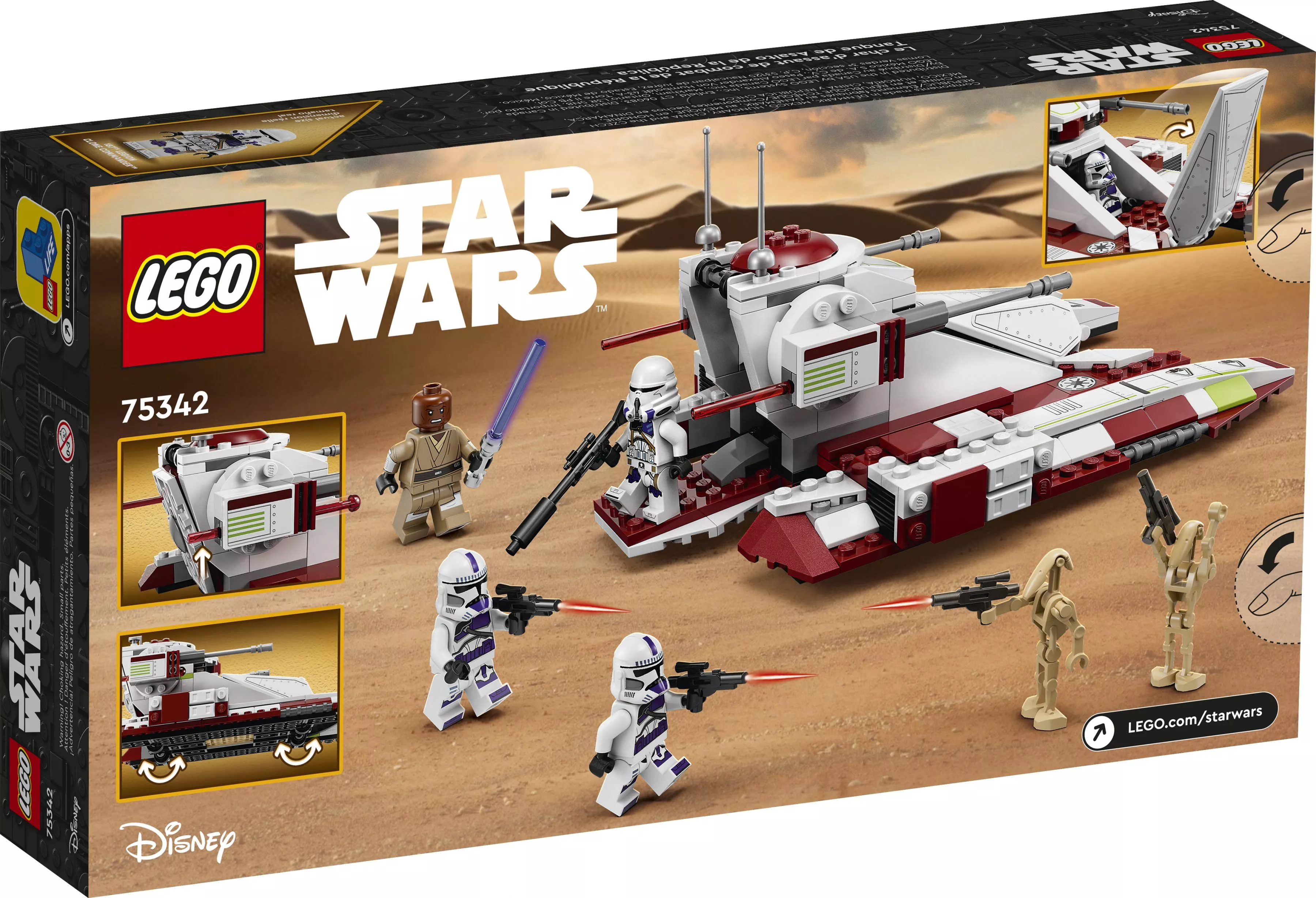 Набор LEGO Star Wars 75342 Республиканский боевой танк включает в себя все необходимые элементы для создания мощного и впечатляющего боевого танка.
