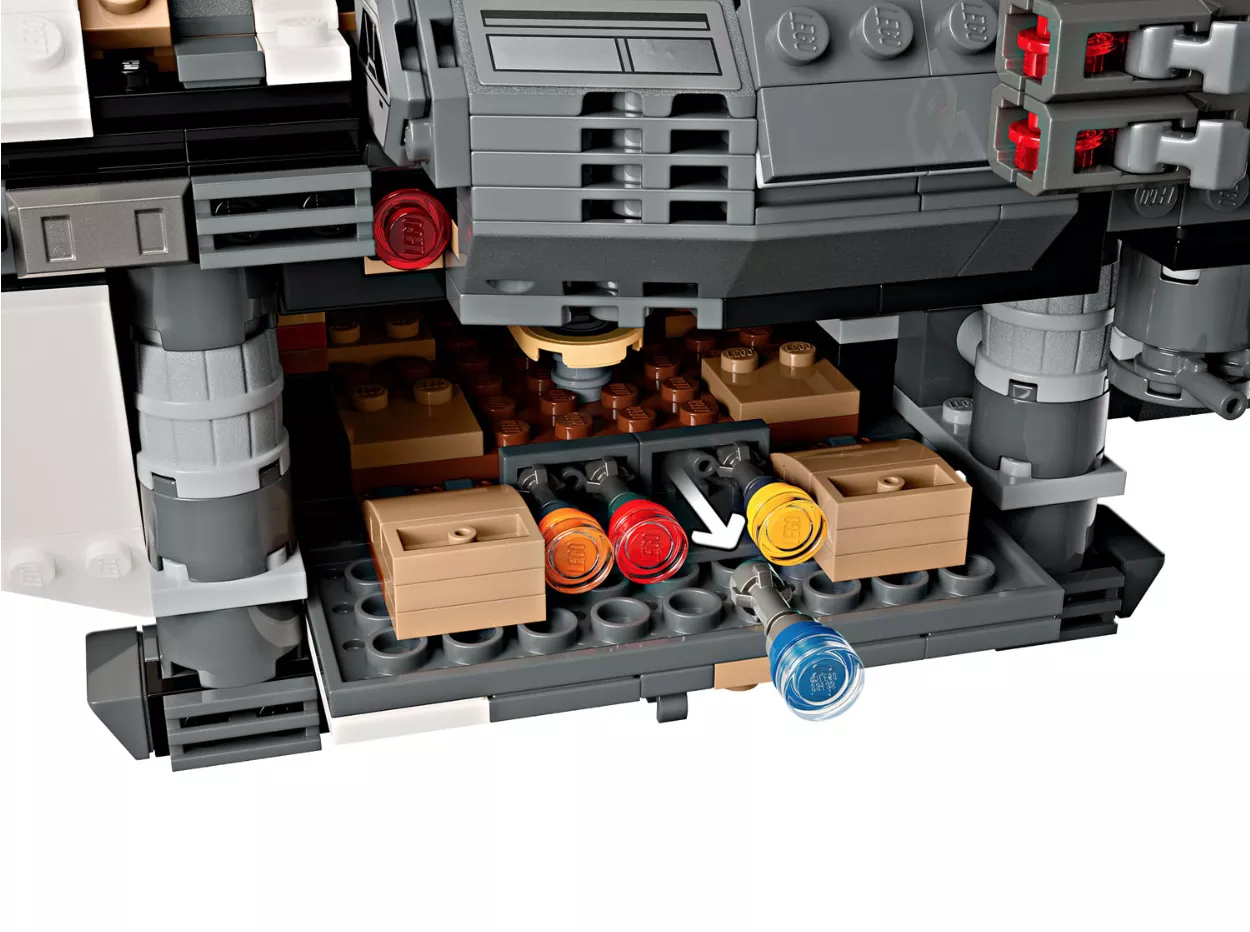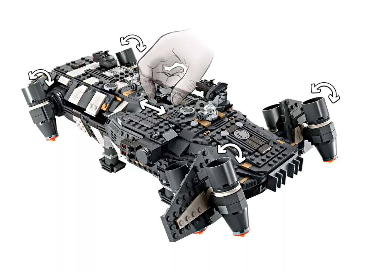 •Аутентичные особенности: кабина пилота, отсек с сиденьями для 4 минифигурок LEGO, вращающиеся двигатели для посадки, взлёта или полёта, 2 шипомета с креплением на штырях и 2 вращающимися турелями, каждая из которых оснащена шипометом.