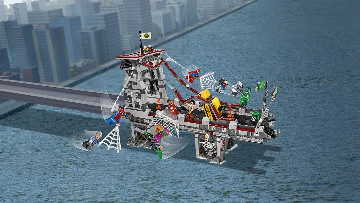 Набор включает в себя детализированный мост, который станет основной ареной для сражений, а также множество дополнительных элементов, делающих игру ещё более интересной и разнообразной. Вы сможете использовать различные ловушки и механизмы, чтобы одолеть врагов и защитить город от злодеев.