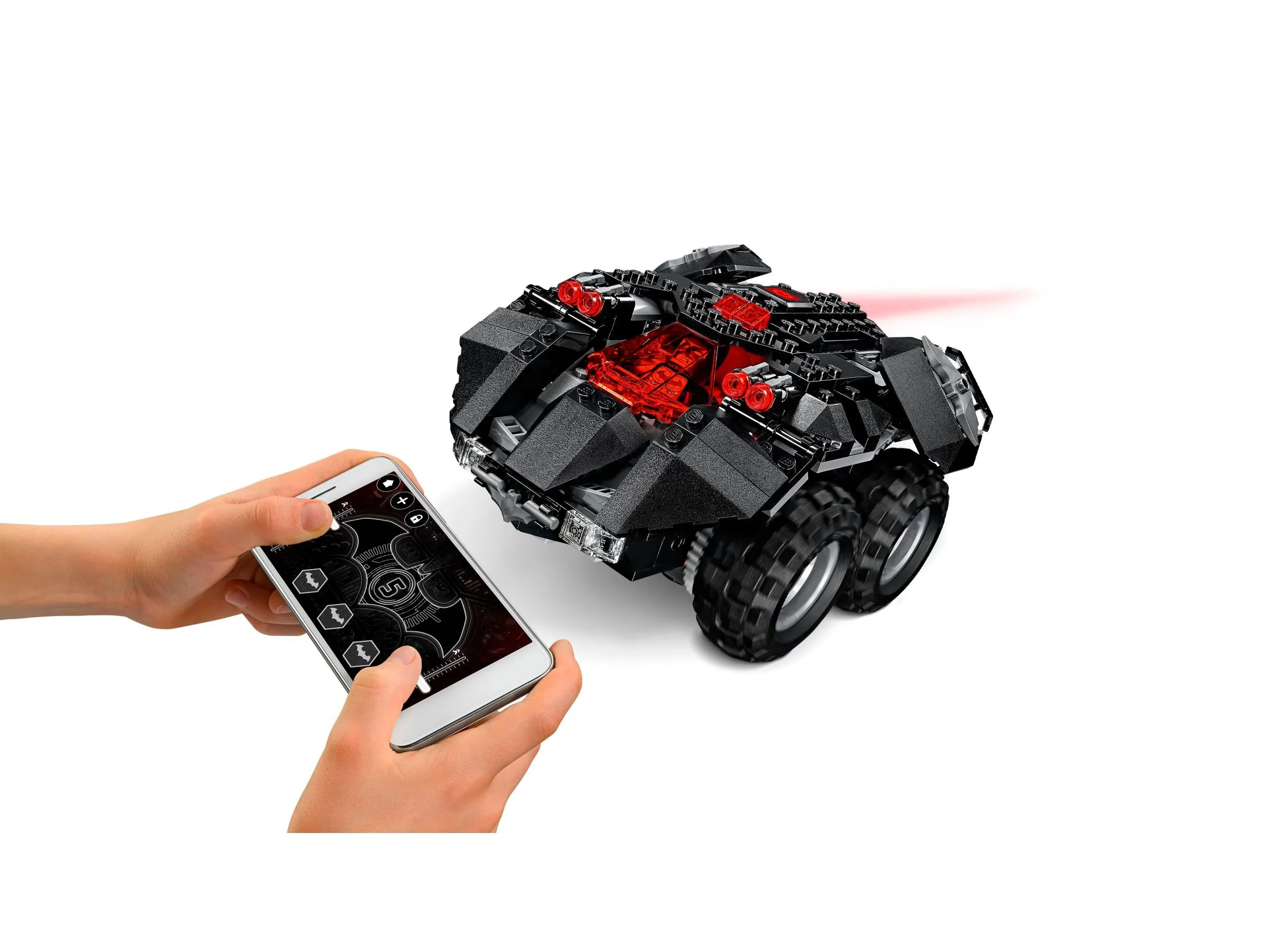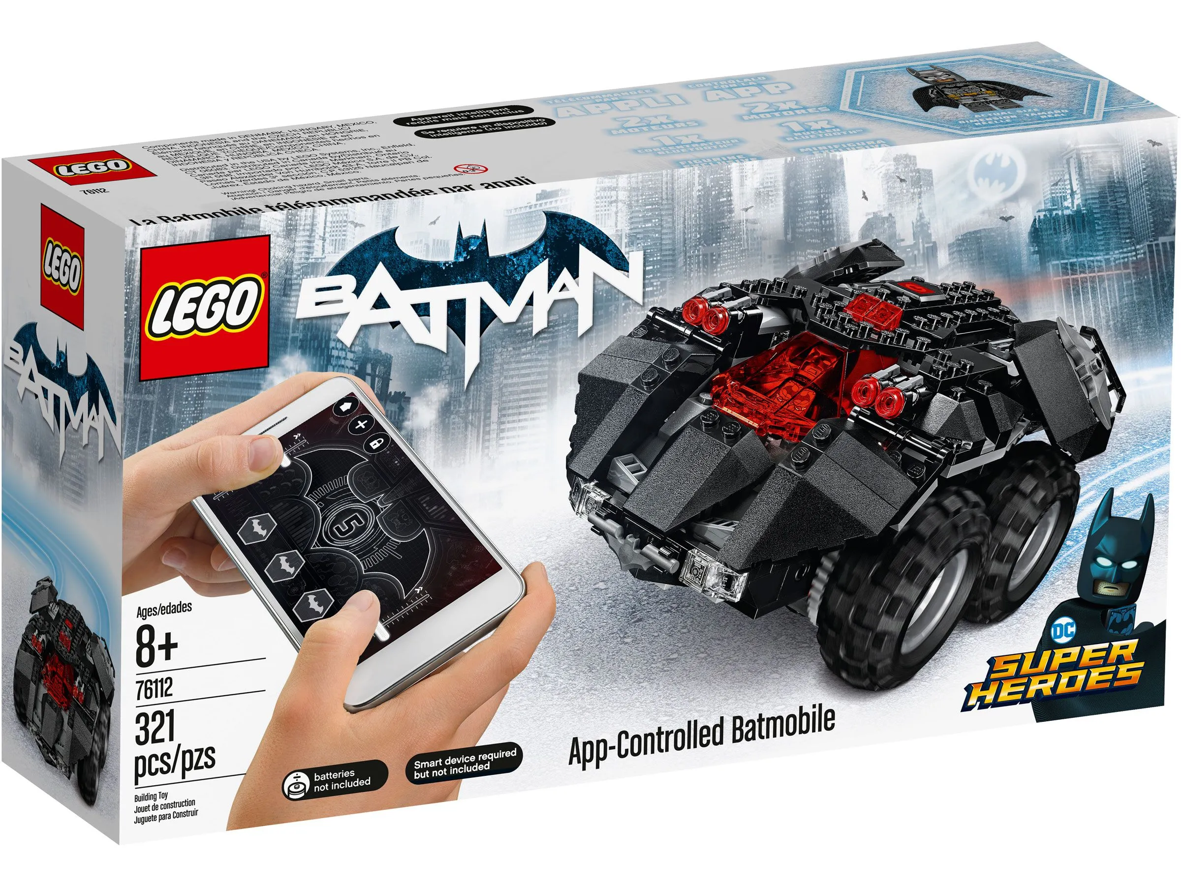 Особенностью является возможность дистанционного управления Бэтмобилем через специализированное приложение на вашем смартфоне или планшете, доступное для скачивания в App Store и Google Play. Эта функция превращает игру в захватывающее приключение, позволяя машине двигаться во все стороны и вращаться на 360 градусов, демонстрируя непревзойденные маневры.