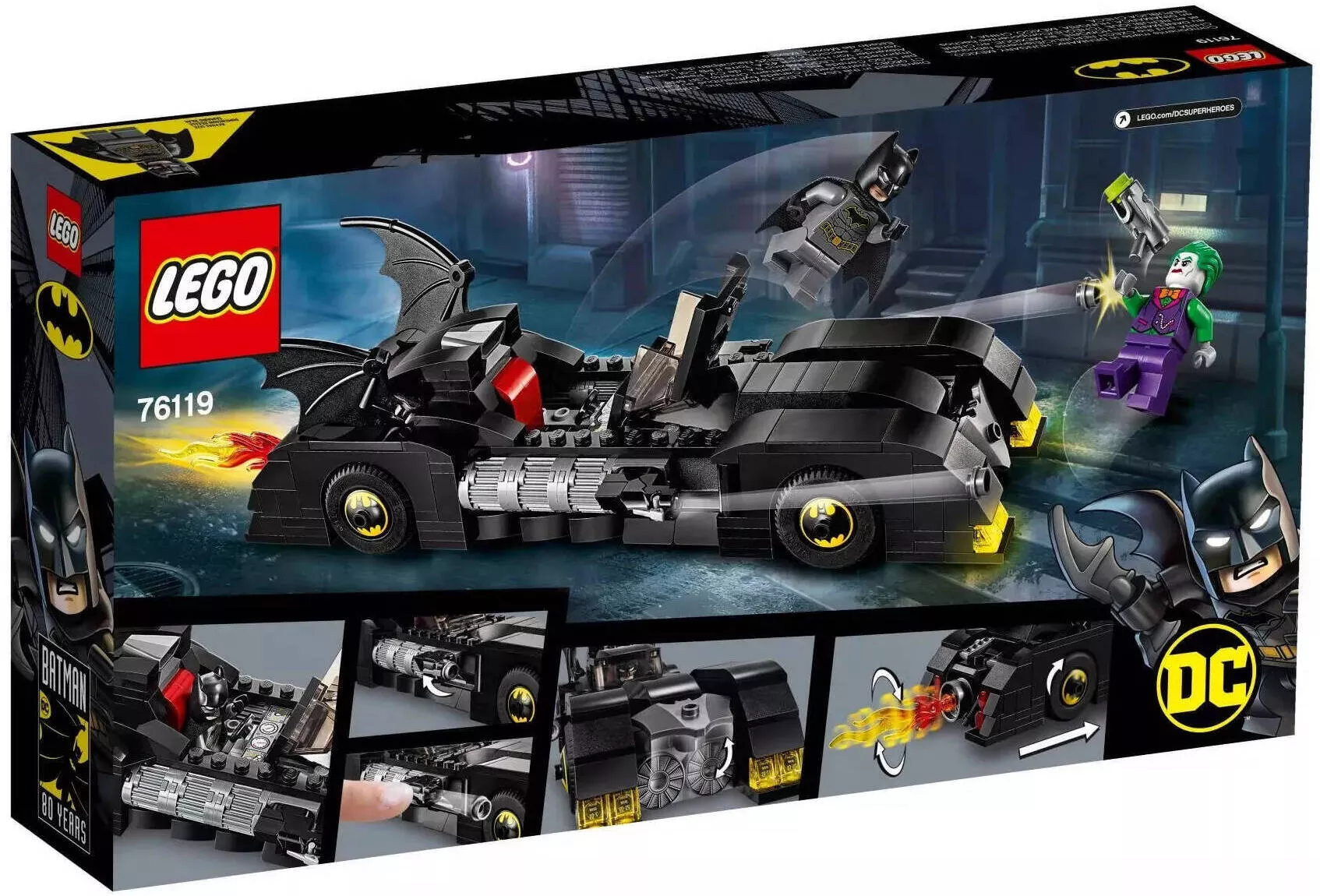 Отправьтесь на улицы Готэма с LEGO Super Heroes 76119 Бэтмобиль: Погоня за Джокером и воплотите в жизнь захватывающие приключения своих любимых супергероев.