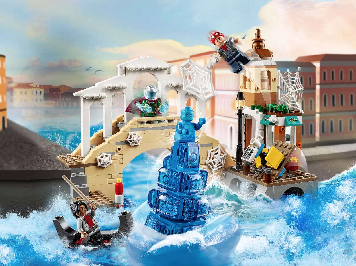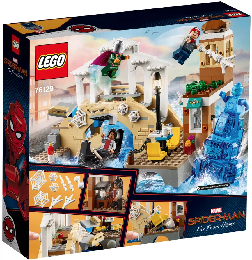 Наконец-то Питер Паркер, он же Человек Паук, смог выбраться на романтическое свидание с Эм Джей. Но все испортило нападение Гидромена. Супергерою так и не удалось насладиться вкусной пиццей и кофе, ведь ему придется защитить Венецию от разрушений, которые способен устроить злодей. Человек Паук может выстрелить в Гидромена своей паутиной, а затем зависнуть на стене. Совсем как в новом фильме Marvel "Человек-Паук: вдали от дома". На помощь герою в этот раз придет Мистерио, в союзе с которым Питеру придется сражаться против разрушающего все на своем пути монстра. С новым уникальным набором от Lego можно самому воссоздать все самые захватывающие сцены грядущего блокбастера.