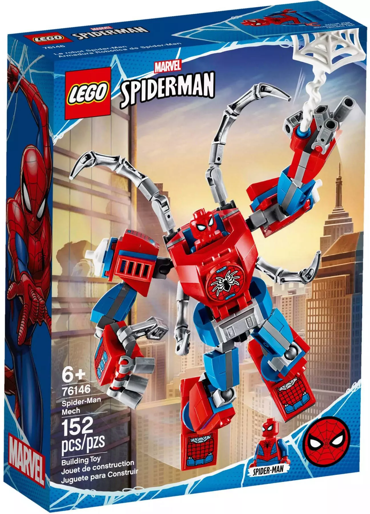 Набор 76146 включает в себя минифигурку Человека-Паука, выполненную с высокой детализацией, а также робота, который станет отличным дополнением к коллекции супергеройской тематики. Робот оснащен подвижными суставами, что позволяет принимать различные боевые позы, и специальным местом для установки минифигурки Человека-Паука.
