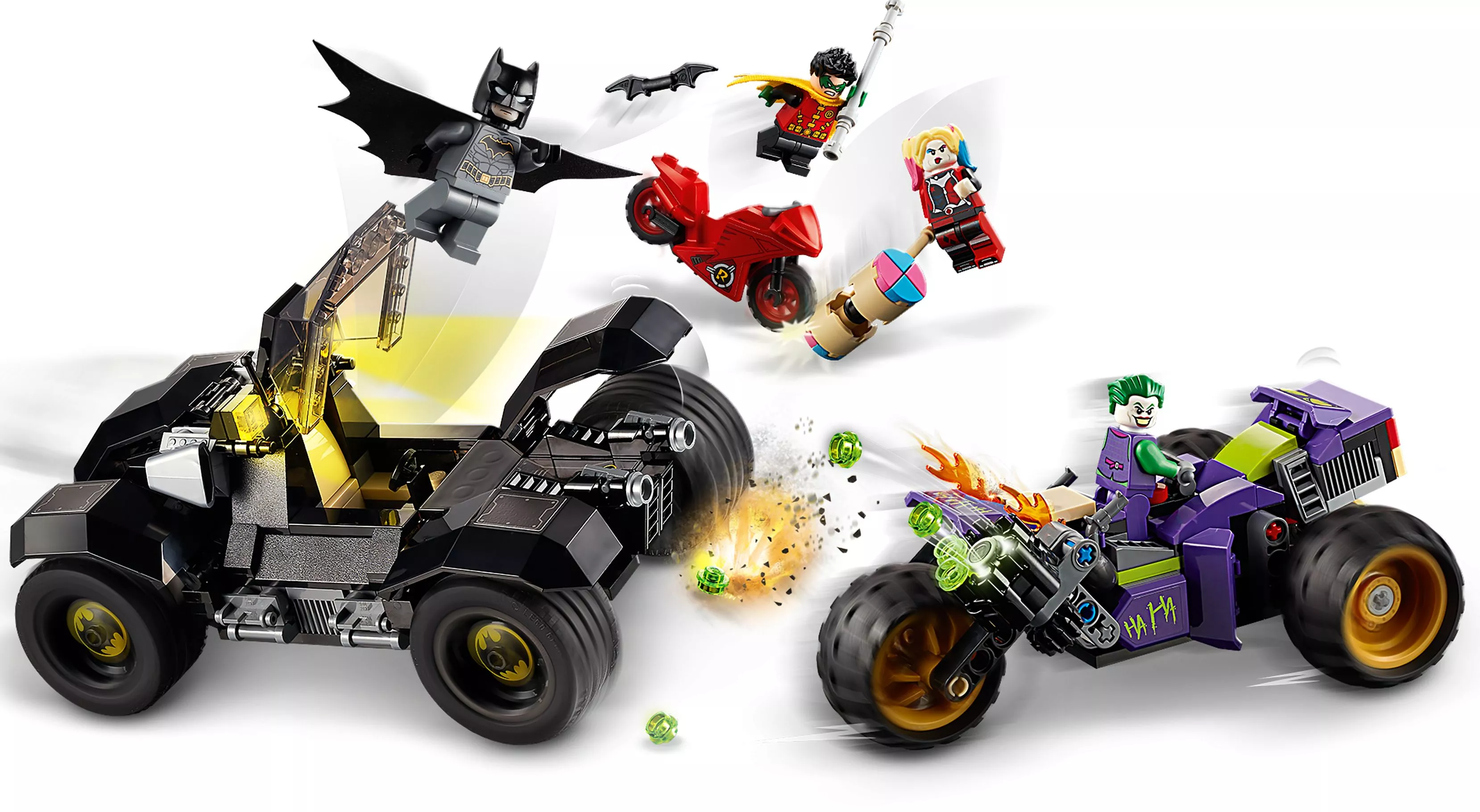Набор Погоня на Тройном Джокере идеален для любителей супергероев и комиксов DC, предлагая богатые возможности для творчества и воображения. С его помощью можно не только воссоздать классические сцены из комиксов и фильмов, но и создать собственные уникальные истории противостояния между героями и злодеями.
