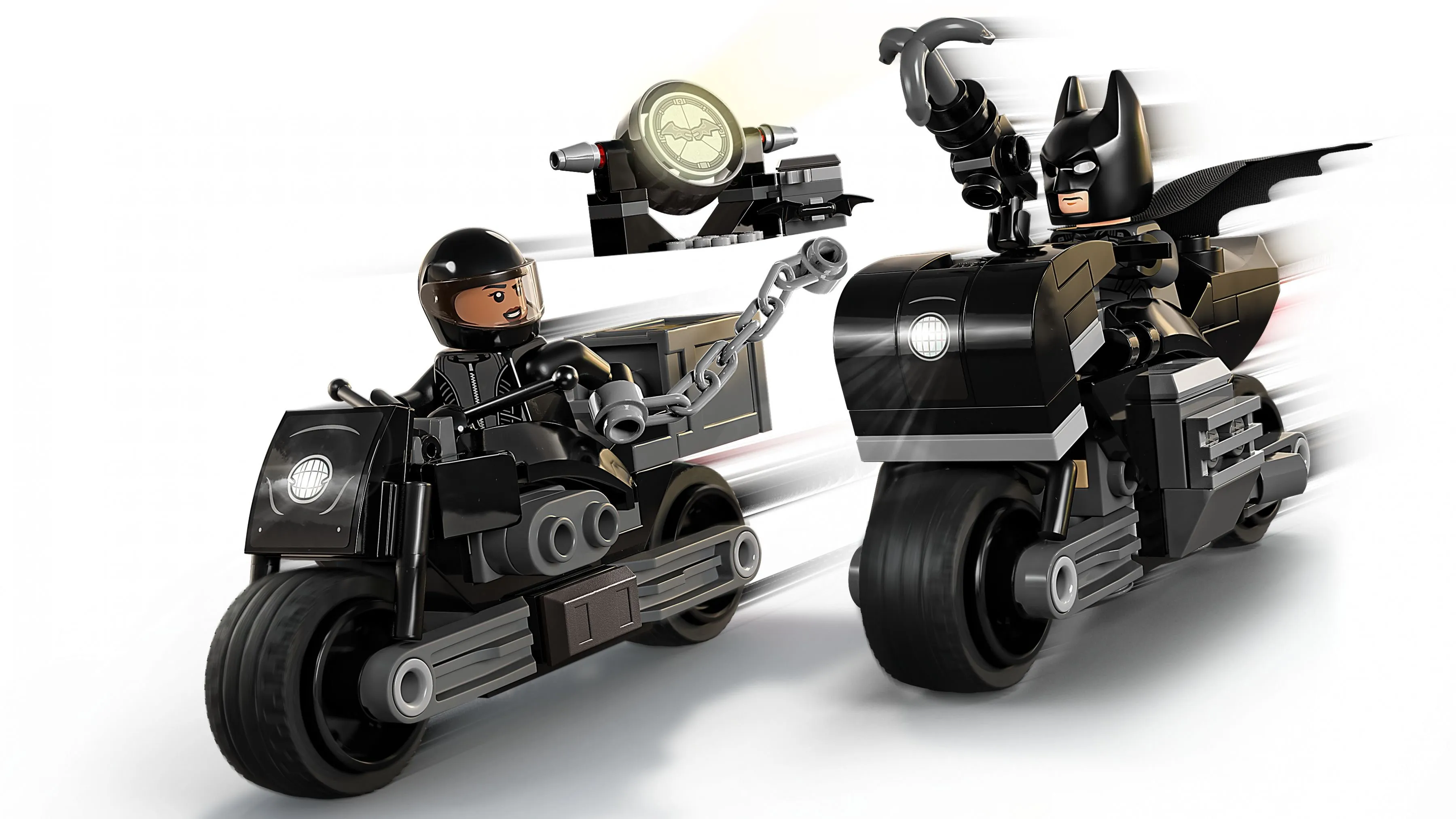 Набор LEGO Super Heroes 76179 Бэтмен и Селина Кайл: погоня на мотоцикле включает в себя 149 деталей и предлагает сборку двух детализированных мотоциклов, а также минифигурки Бэтмена и Селины Кайл. Этот набор станет отличным дополнением к вашей коллекции LEGO Super Heroes, позволяя разыгрывать сцены погони и борьбы с преступностью в Готэме.