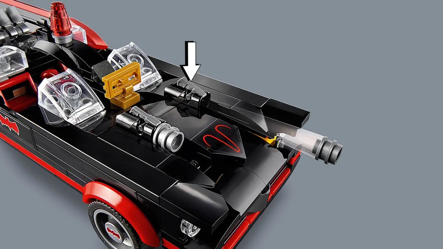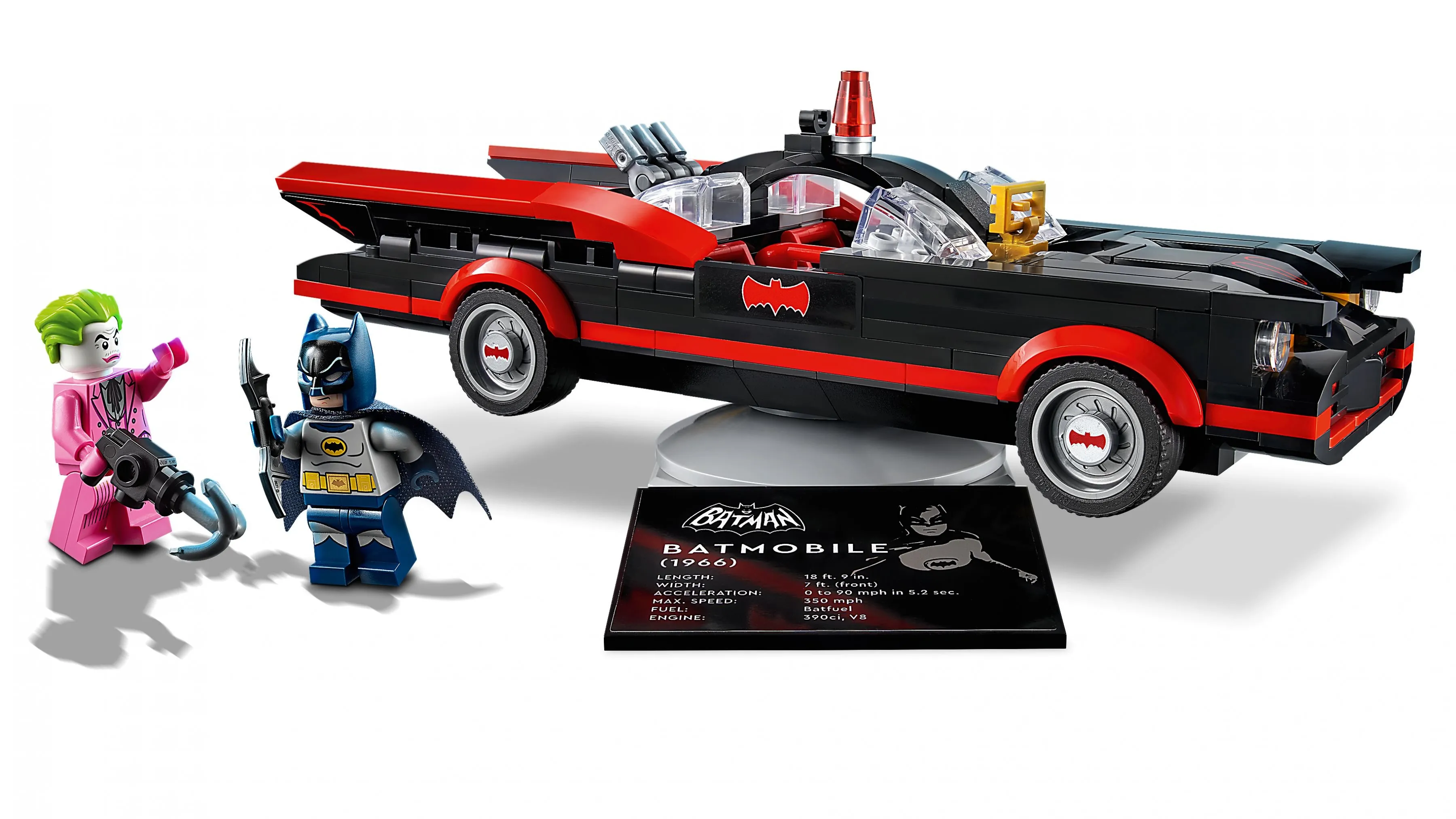 Модель Бэтмобиля выполнена с невероятной точностью, воспроизводя детали классического автомобиля, который был представлен в оригинальном телесериале. Черно-красная цветовая гамма, фирменные аксессуары и ретро-дизайн делают эту модель ярким напоминанием о приключениях Темного рыцаря. Бэтмобиль оснащен двумя сиденьями для минифигурок, вращающимися колесами и деталями, которые придают модели дополнительную аутентичность.