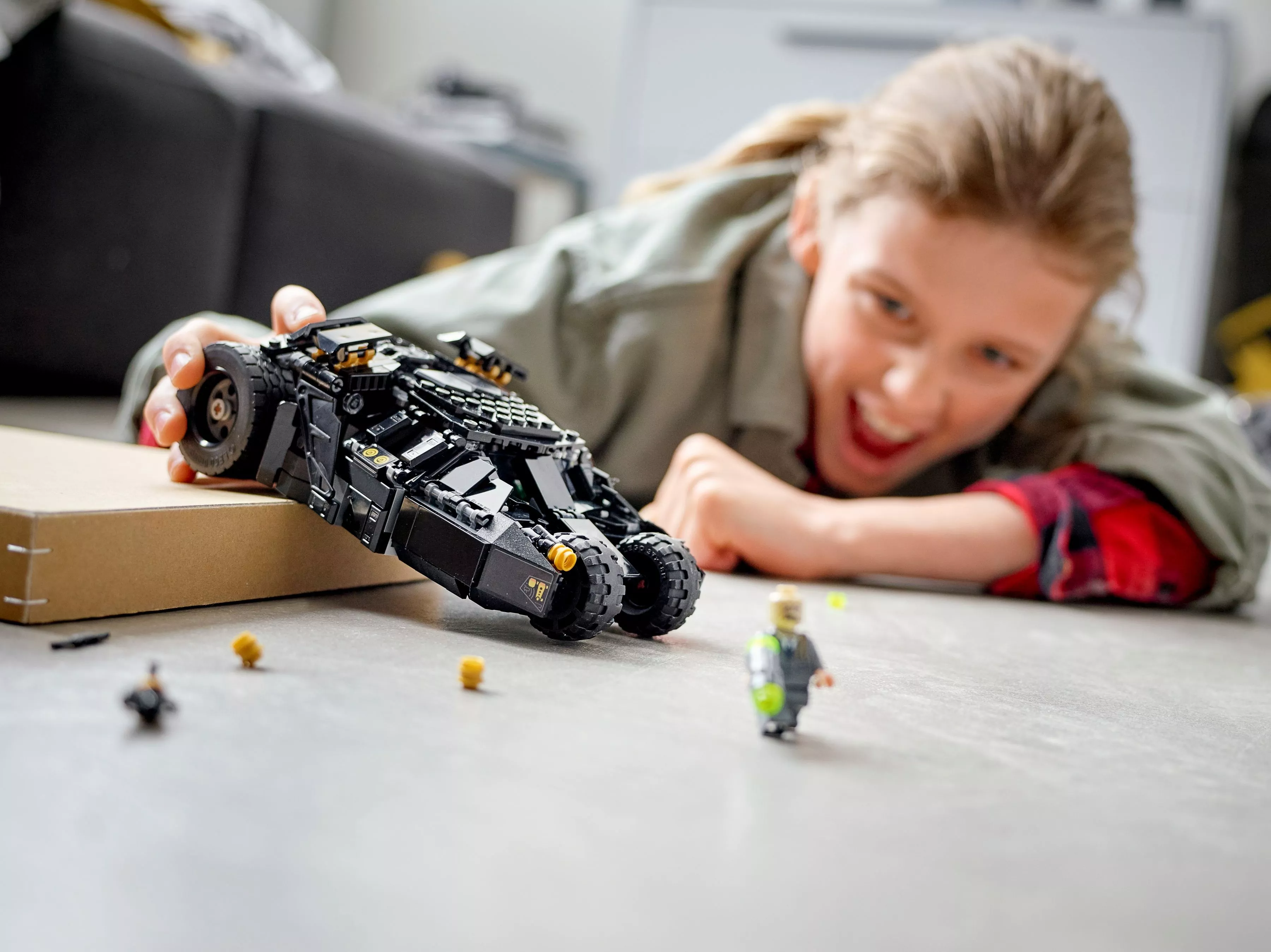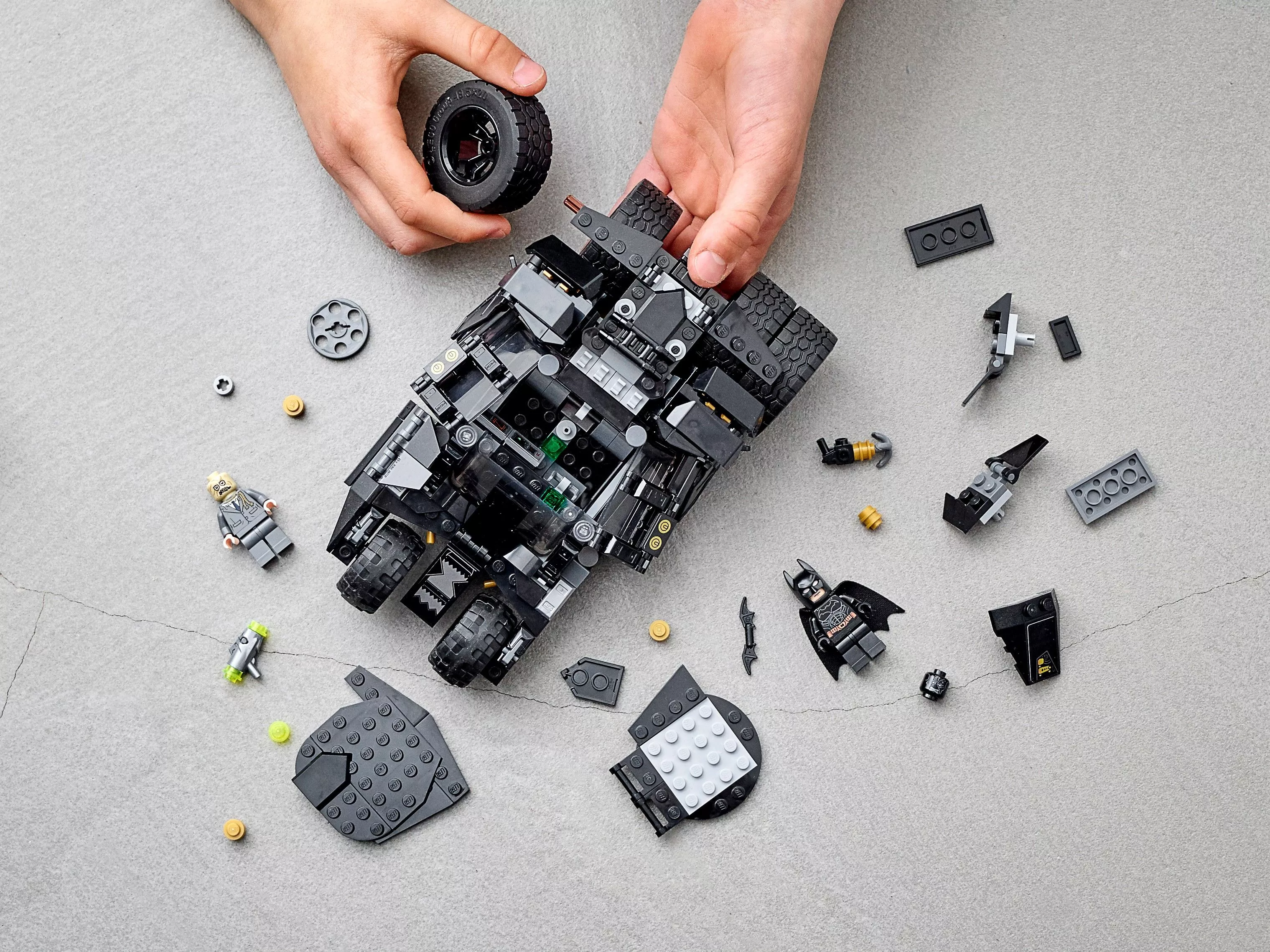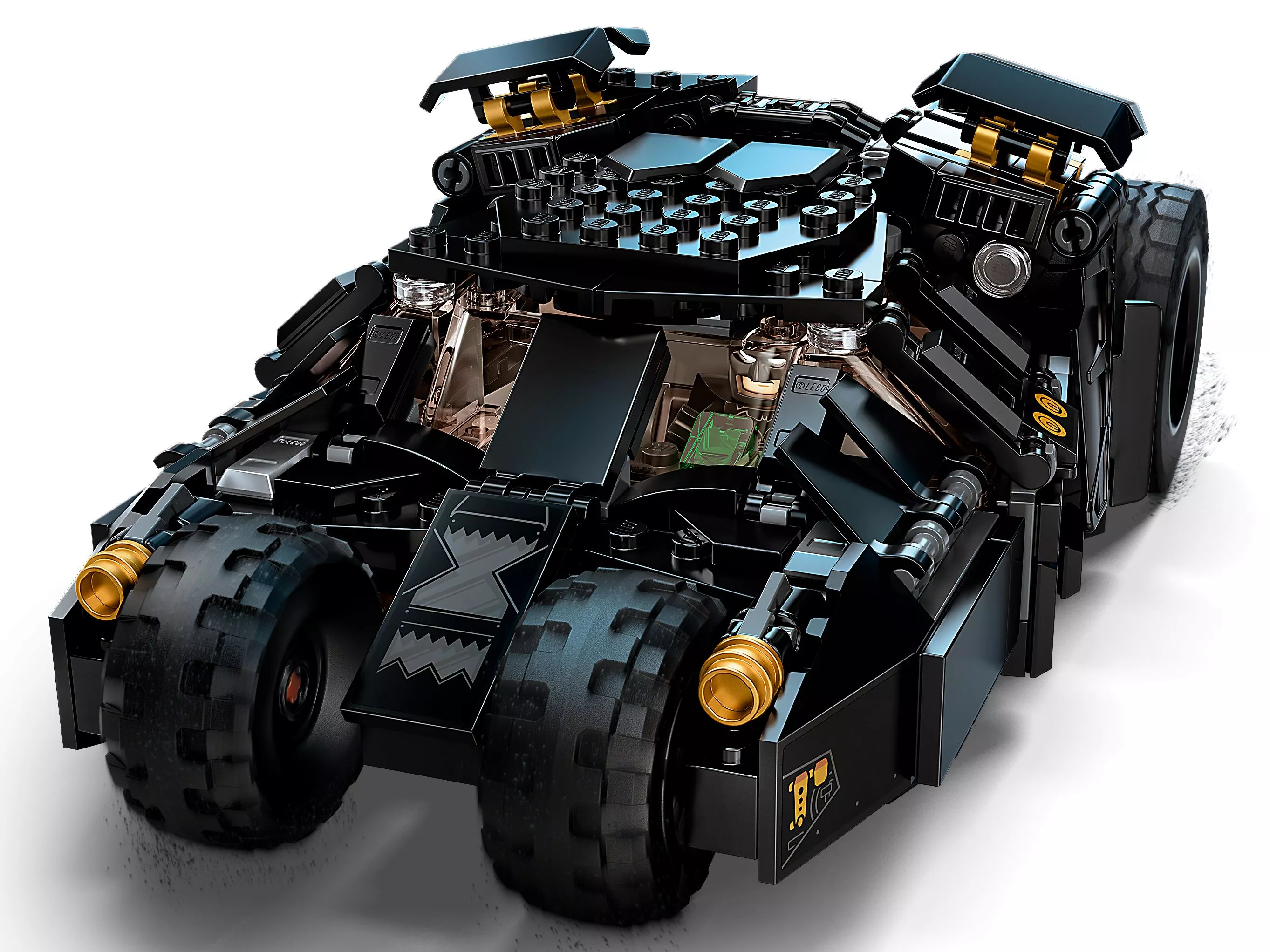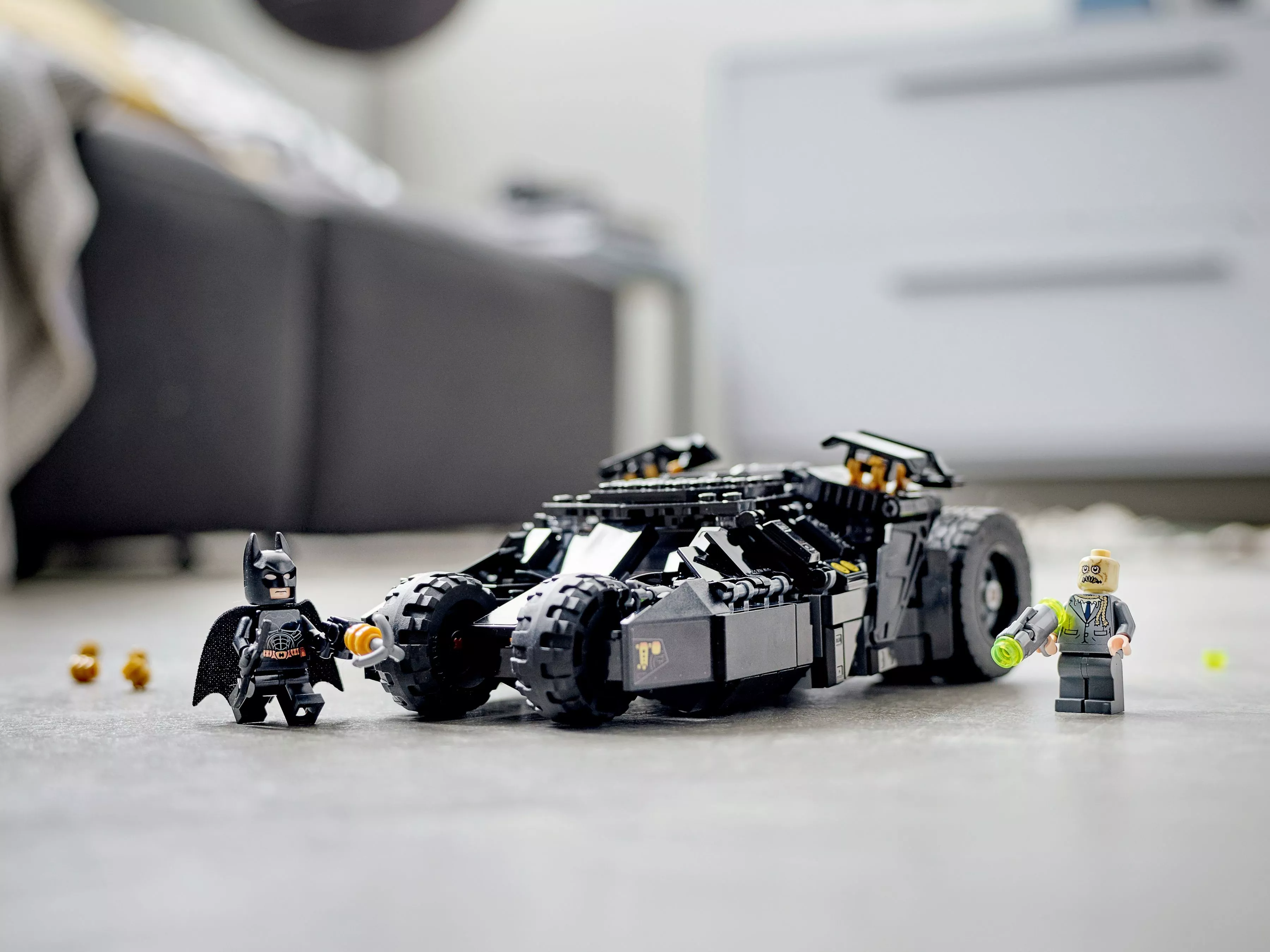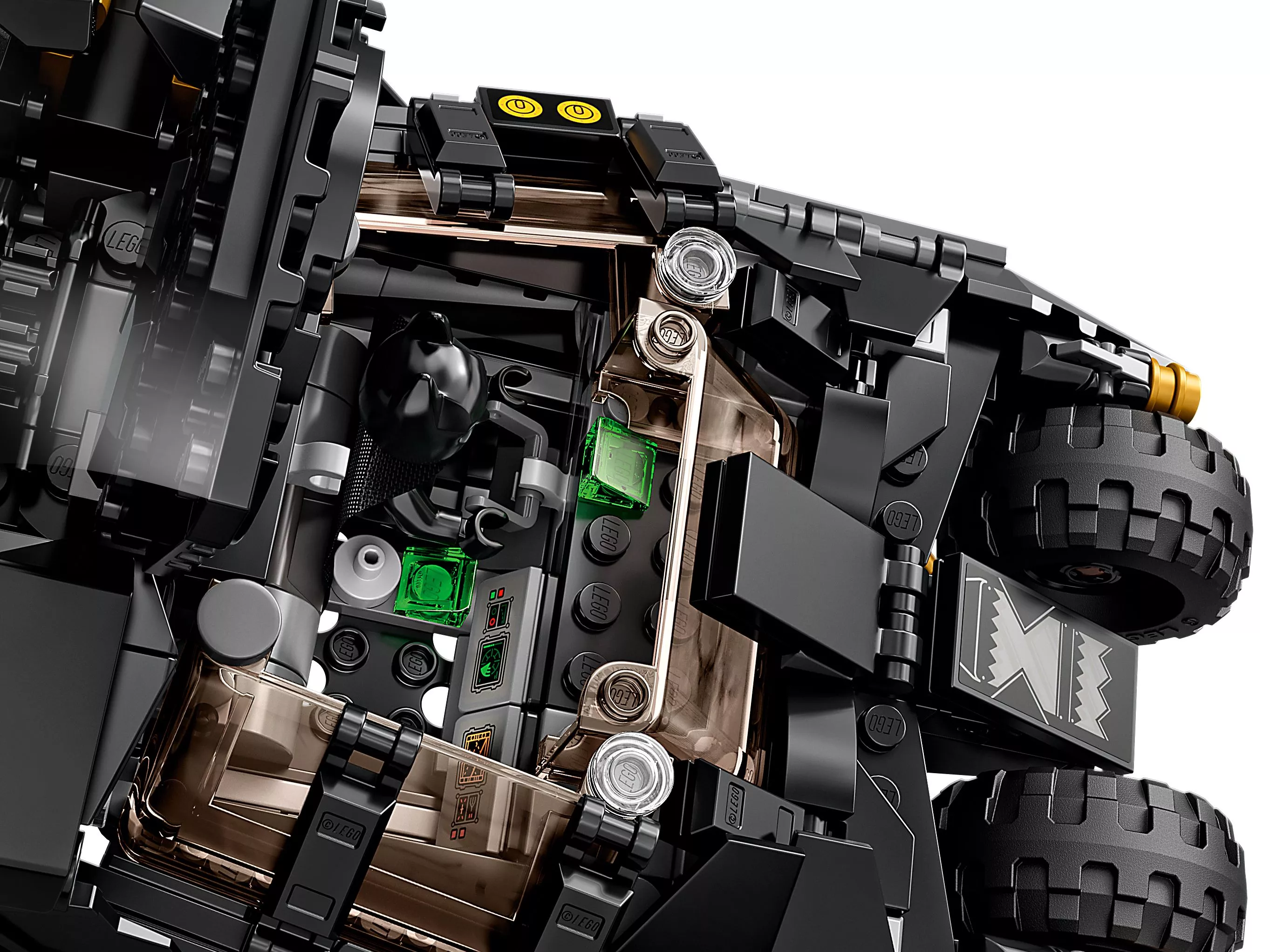 Настройтесь на удивительные приключения с конструктором LEGO DC Comics Super Heroes 76239 «Бэтмобиль «Тумблер»: схватка с Пугалом». Присмотритесь: Бэтмен носится по Готэм-Сити в бронированном «Тумблере» и пытается остановить Пугало. Персонаж собирается выпустить ядовитый газ ужаса, поэтому поторопитесь. Проверьте панель управления, постреляйте из шипометов и остановитесь с визгом тормозов. Не пропустите появления Рыцаря в плаще и переходите к активным играм. Чем закончится приключение? Все зависит только от вашего воображения и фантазии. Придумывайте больше классных сюжетов для творческой игры с безопасным конструктором или повторяйте понравившиеся сценарии. Конструктор с бэтмобилем - лучший подарок детям от 8 лет и старше на Новый год, день рождения, 8 Марта, 23 Февраля, 1 Июня или любой другой праздник.