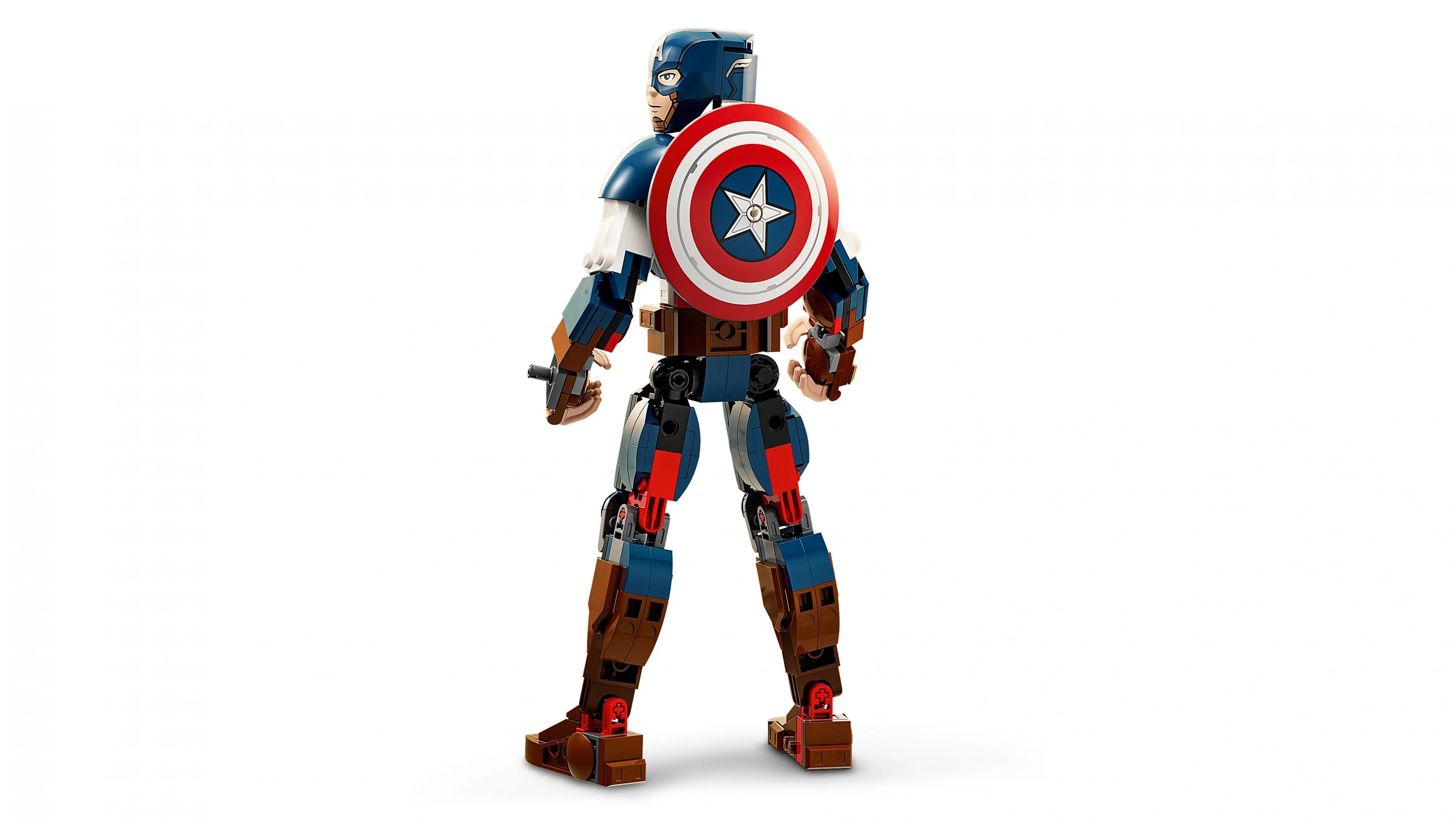 Модель Капитана Америки выполнена в классическом костюме с узнаваемыми элементами, такими как звезда на груди и красно-сине-белая цветовая гамма. С помощью этого набора вы сможете не только собрать героя, но и разыгрывать сцены из фильмов и комиксов, погружаясь в атмосферу борьбы за справедливость.