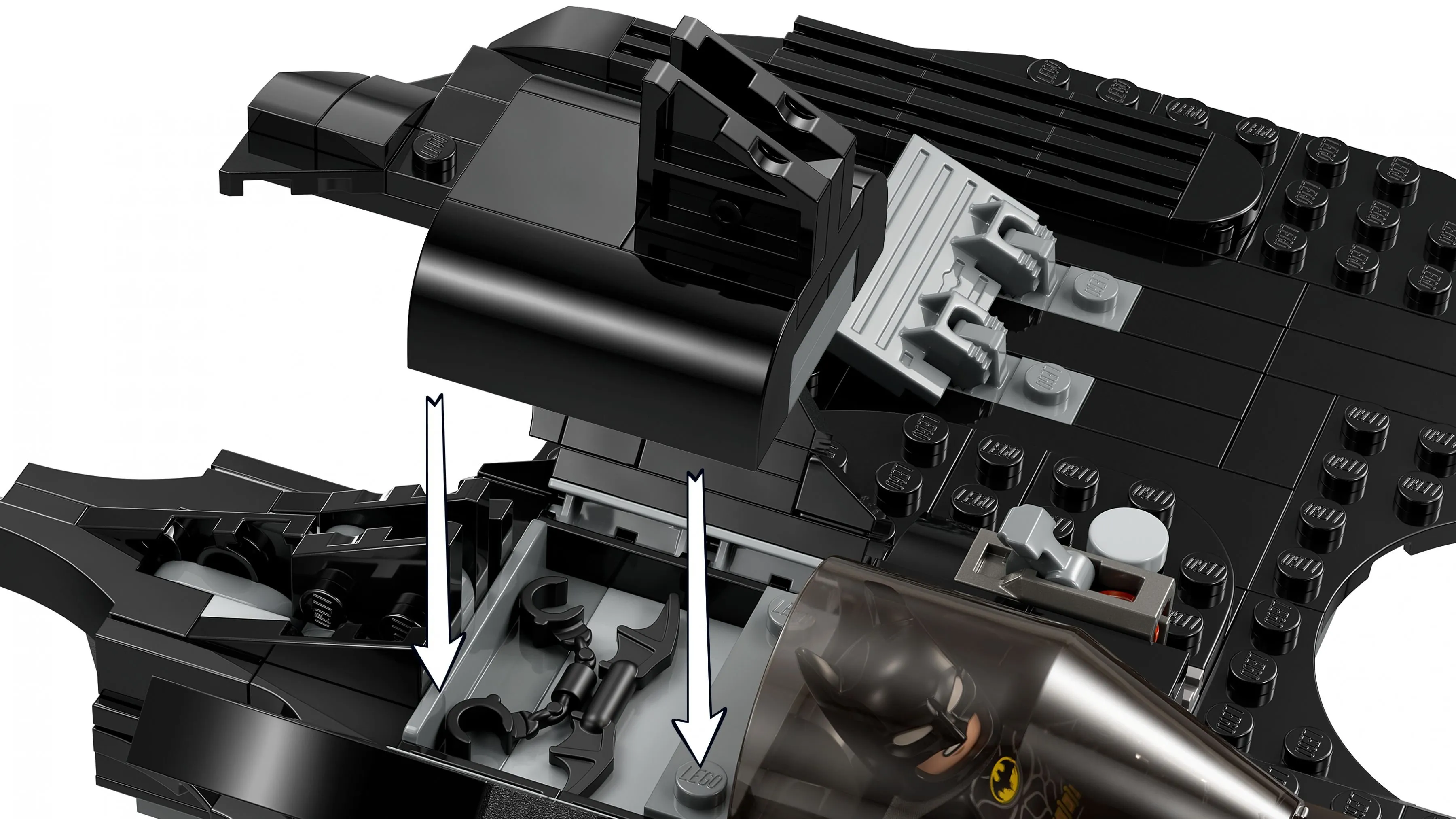 Главная особенность набора — это мощное Крыло летучей мыши Бэтмена, оснащённое подвижными элементами, что делает его идеальным для выполнения сложных манёвров в воздушных сражениях. Джокер, вооружённый своим фирменным аксессуаром, вступает в бой с Бэтменом, создавая атмосферу классического противостояния между героями и злодеями.