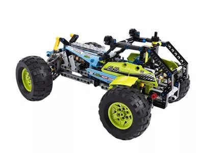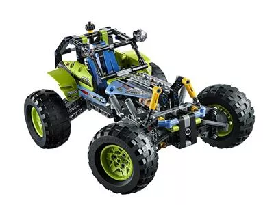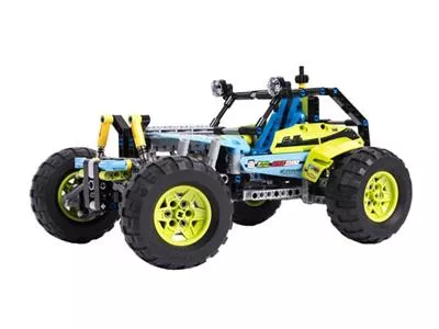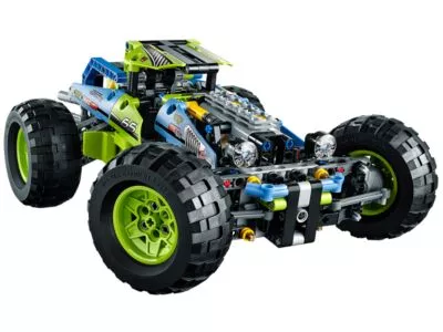Brettere mit diesem LEGO Technic Formula Off-Roader über bergiges Gelände! Das Modell begeistert mit seinem peppigen lindgrün-blauen Farbmuster, den gewaltigen grobstolligen Reifen auf knallgelben Felgen, der funktionstüchtigen Lenkung, der robusten Karosserie, dem hochklappbaren Fahrerkäfig, den großen Dachscheinwerfern und dem detailgetreuen 4-Zylinder-Motor mit beweglichen Kolben. Dieses realitätsgetreue Modell ist mit seiner superrobusten Radaufhängung auf heftigste Offroad-Action getrimmt!Lässt sich in ein superschnelles Rennauto umbauen.