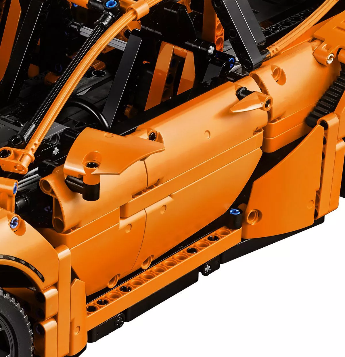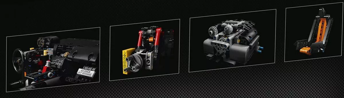 Lego Porsche 911 GT3 RS — практически полная копия спорткара последней модели, с успехом представленного на автосалоне в Женеве. Соберите ее, скрупулезно соединив 2700 деталей, и вы прикоснетесь к мечте. Модель Porsche 911 GT3 RS серии LEGO Technic — великолепный коллекционный образец, который придется по душе истинным ценителям. Ее экстерьер, как и у оригинала, отличается гладкими аэродинамическими линиями. Открыв двери салона Лего Техник Porsche 911 GT3 RS, вы найдете миниатюрную кабину с действующей коробкой передач, рулевым колесом, приборной панелью, бардачком и стильными сиденьями. Под капотом расположен отсек для хранения, а под задней крышкой — 6-цилиндровый двигатель с работающими поршнями.