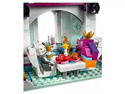 - Der mehrstöckige Tempel verfügt über eine drehbare Spitze mit einer aufklappbaren, abnehmbaren Rakete für Königin Wasimma Si-Willi, aufklappbare Kapseln für andere Figuren, 2 Balkons, einen Sicherheitsraum mit einem Bildschirm zum Zusammenbauen und weiteren Elementen wie einer Kaffeetasse sowie einem kleinen Herz und einem Donut, und ein Esszimmer mit einem Tisch, 2 Stühlen, Kommode, einem Smoothie-Maker zum Zusammenbauen, verschiedenen Lebensmittel- und Getränke-Elementen und einem DJ-Pult.