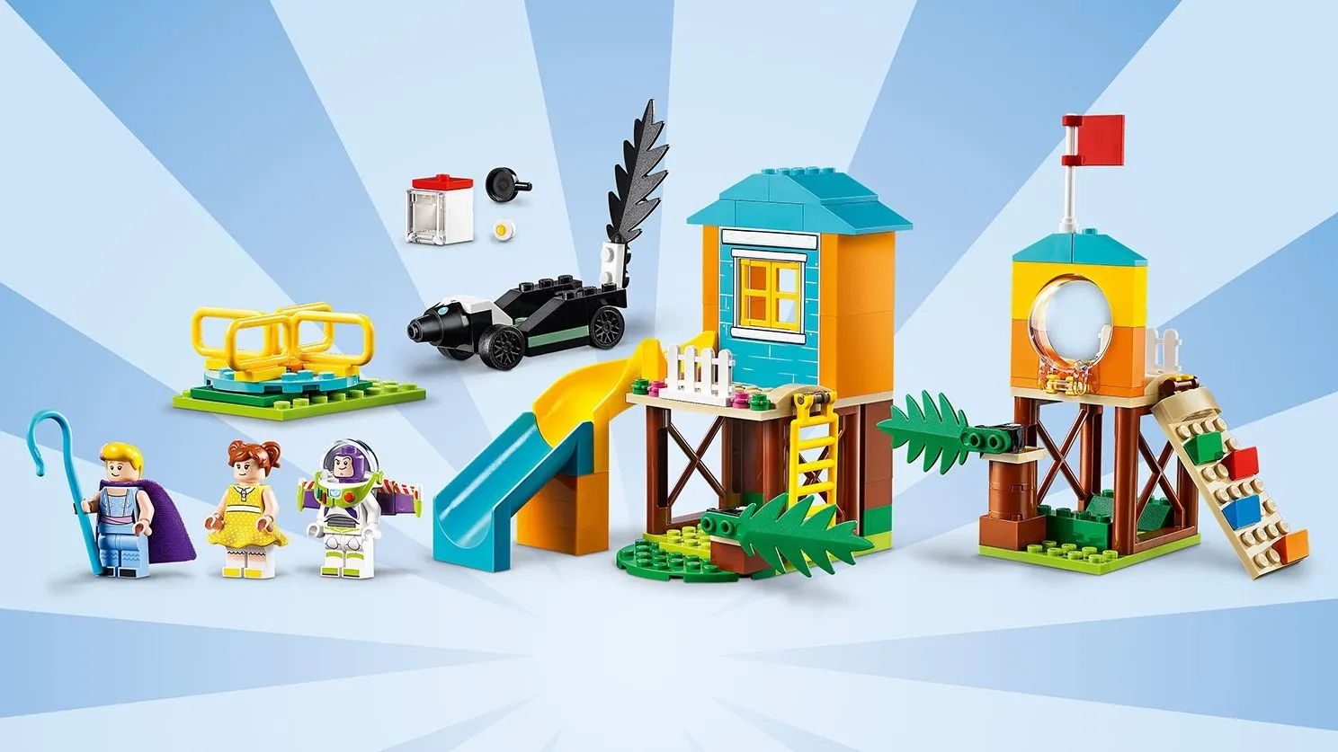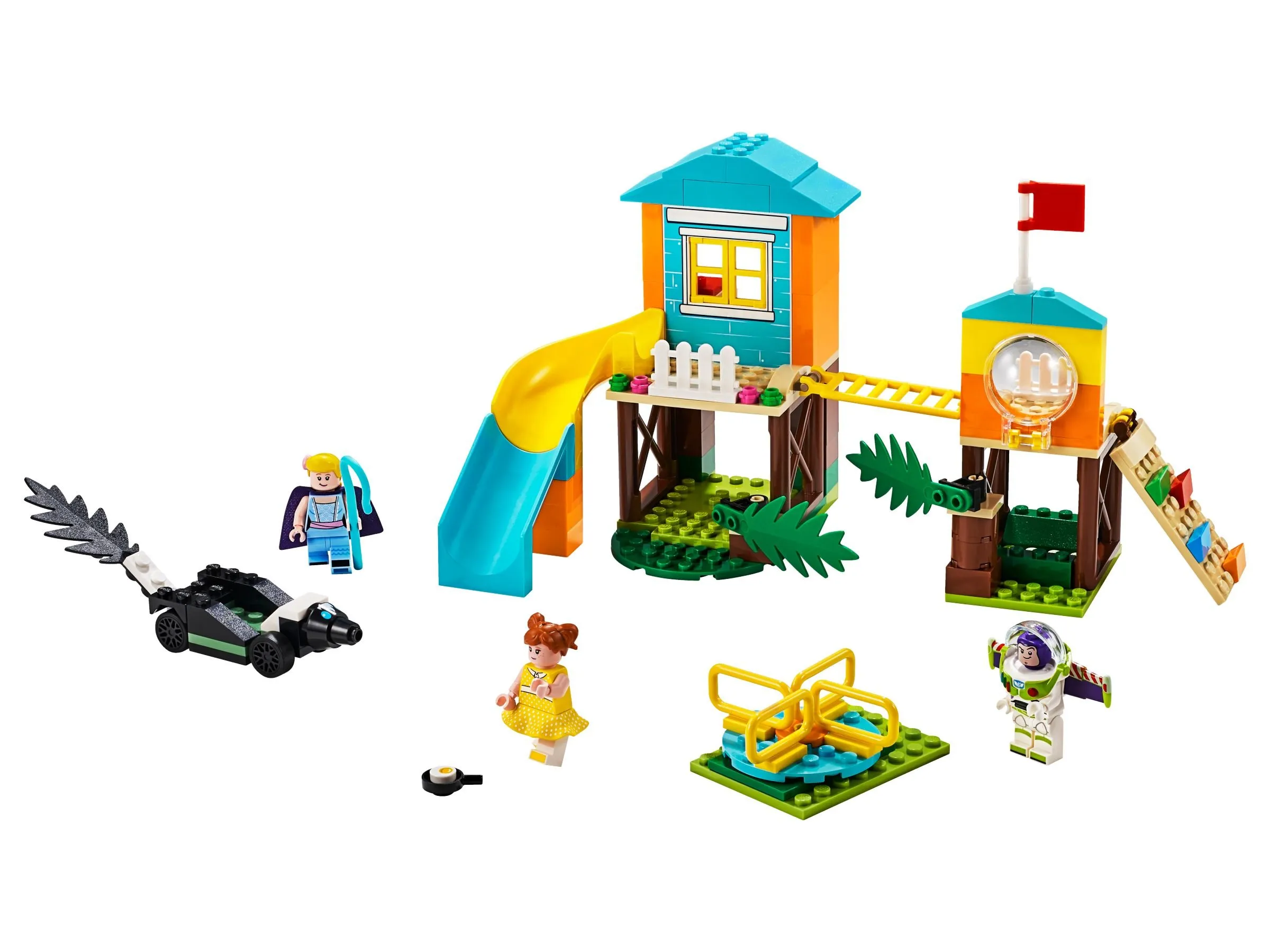 Набор LEGO Toy Story 10768 Приключения Базза и Бо Пип на детской площадке включает в себя 139 деталей и предлагает множество возможностей для игры и воображения. Основные элементы этого набора: