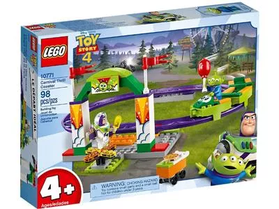 Конструктор LEGO Disney Pixar Toy Story 4 10771 Аттракцион «Паровозик» поможет вам почувствовать себя участником настоящей ярмарки. Набор создан по мотивам всеми любимого мультфильма «История игрушек - 4», а значит, дети будут знать героев, с которыми имеют дело. Этот простой конструктор подойдет для ребят от 4-х лет. Он станет отличным подарком как для мальчиков, так и для девочек. Более того, поиграть с таким конструктором захотят даже взрослые. В комплекте имеется фургончик с пиццей и мороженым - голодным никто не останется. Ребята также смогут покатать персонажей в вагончике и пройти через вращающийся турникет. Аттракцион «Паровозик» содержит большое количество разнообразных элементов - вагончики, арки, вращающиеся турникеты. Благодаря базовым пластинам справиться с представленным конструктором смогут даже неопытные пользователи.
